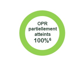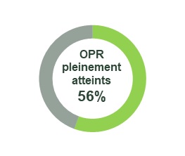 Ce diagramme montre deux anneaux épais, chacun divisé en deux parties. Les segments affichent un pourcentage des objectifs en matière de population et de répartition du plan d’action qui ont été partiellement atteints et pleinement atteints, et sont pondérés en conséquence. L’un des anneaux montre les objectifs en matière de population et de répartition entièrement atteints (100 %), tandis que l’autre montre les objectifs en matière de population et de répartition partiellement atteints (56 %). Les pourcentages sont également indiqués sous forme numérale au centre des cercles.