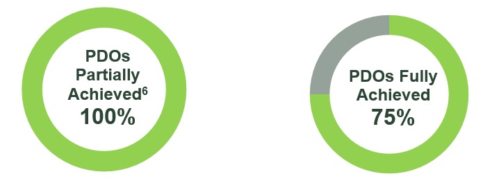 This diagram shows two thick rings. One ring shows that 100% of the Population and Distribution Objectives were partially achieved (100%), while the other ring shows that 75% of the Population and Distribution Objectives were fully achieved.