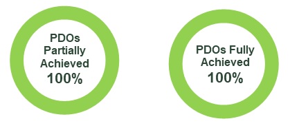 This diagram shows two thick rings. One ring shows that 100% of the Population and Distribution Objectives were partially achieved, while the other ring shows that 100% of the Population and Distribution Objectives were fully achieved.