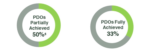 This diagram shows two thick rings. One ring shows that 50% of the Population and Distribution Objectives were partially achieved, while the other ring shows that 33% of the Population and Distribution Objectives were fully achieved.