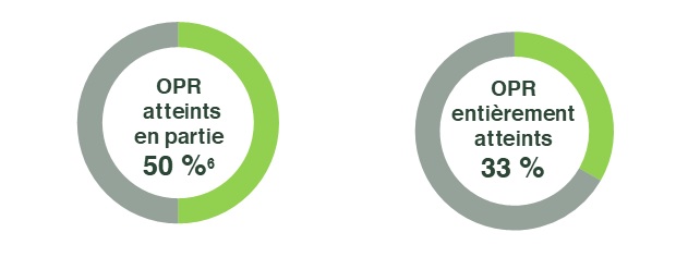 Le diagramme montre deux anneaux larges distincts. L'un des anneaux indique un taux de 50 % pour les objectifs en matière de population et de répartition partiellement atteints, tandis que l'autre anneau indique un taux de 33 % pour les objectifs entièrement atteints.