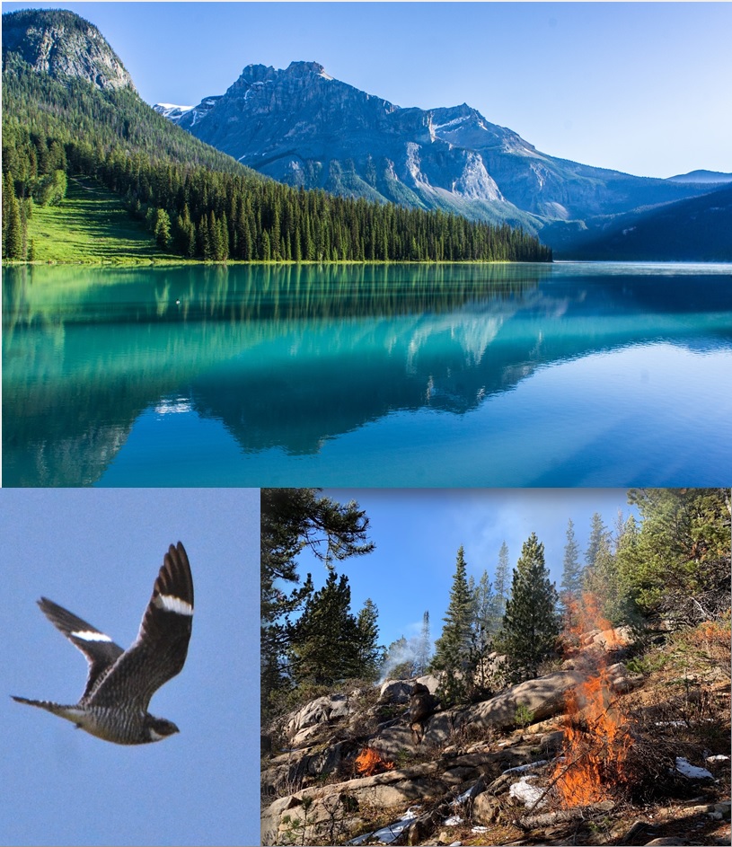 Photos de la couverture : Paysage du parc national Yoho, A. Krause, Agence Parcs Canada (APC); débris d’arbres brûlant sur une pente rocheuse, APC; Engoulevent d’Amérique en vol, L. Halverson, APC.