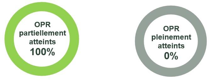 Le diagramme montre deux anneaux larges distincts. L’un des anneaux indique un taux de 100 % pour les objectifs en matière de population et de répartition partiellement atteints, tandis que l’autre anneau indique un taux de 0 % pour les objectifs entièrement atteints.