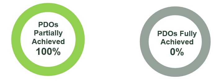 This diagram shows two thick rings. One ring shows that 100% of the Population and Distribution Objectives were partially achieved (100%), while the other ring shows that 0% of the Population and Distribution Objectives were fully achieved.